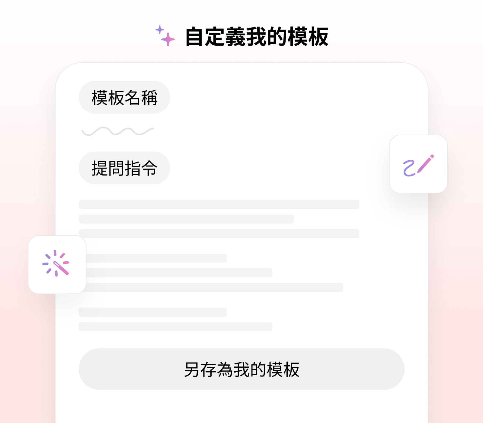 勇敢說出您的想法,轉錄、摘要及整理工作就交給我們,並且會將上述成果存入您的專屬知識庫,方便隨查隨用。