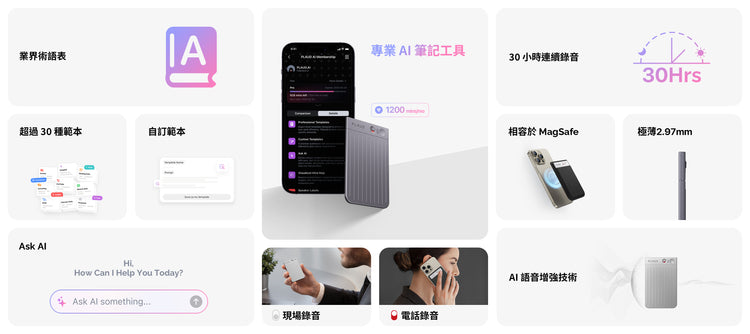 PLAUD NOTE 整合了電話/現場錄音模式,可精準記錄每個細節。