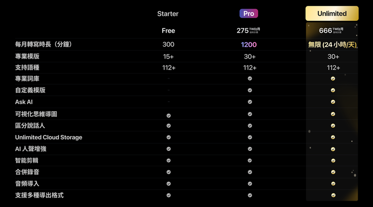112 種語言支援 | 自動辨識發言人 | 智能分段整理